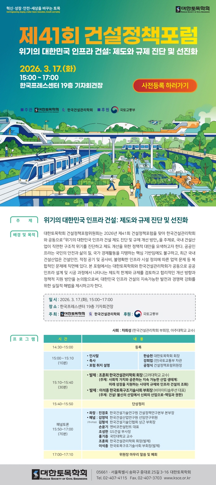 제41회 건설정책포럼 '위기의 대한민국 인프라 건설: 제도와 규제 진단 및 선진화'