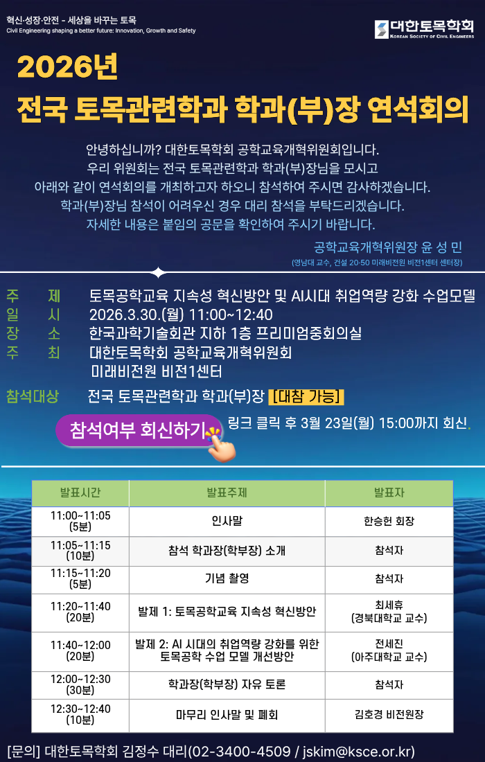 2026년 전국 토목관련학과(부)장 연석회의 개최 안내
