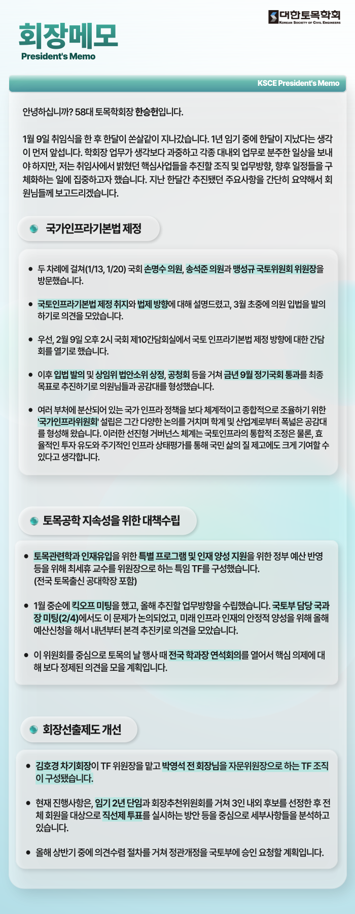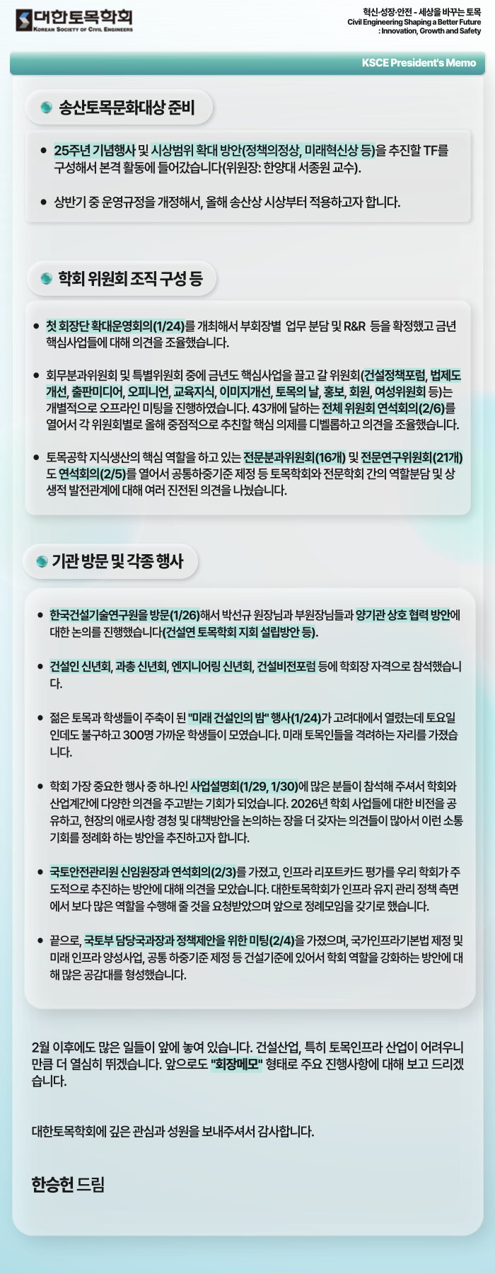 [회장메모] 1월~2월 첫째 주 추진사항