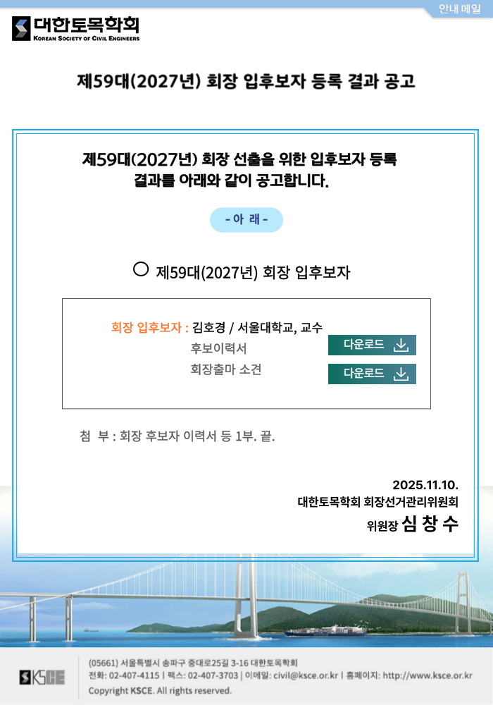제59대(2027년) 회장 입후보자 등록 결과 공고