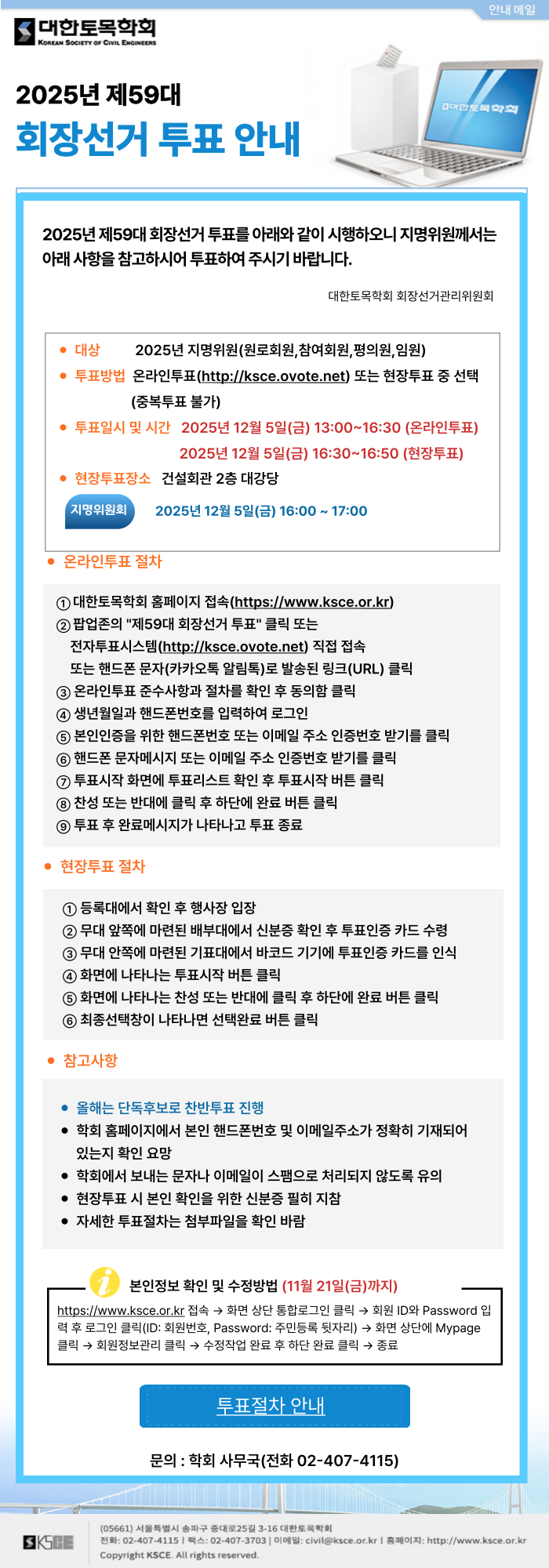 회장 선거는 지명위원(원로회원, 참여회원, 임원, 평의원)에게만 회장선거 투표권이 있음을 알려드립니다.