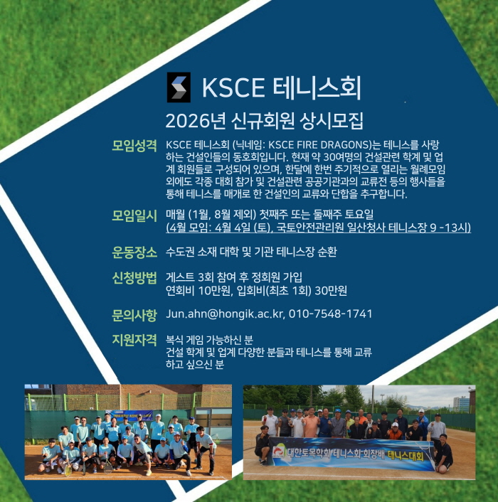 KSCE 테니스회 2026년 신규회원 상시모집 안내